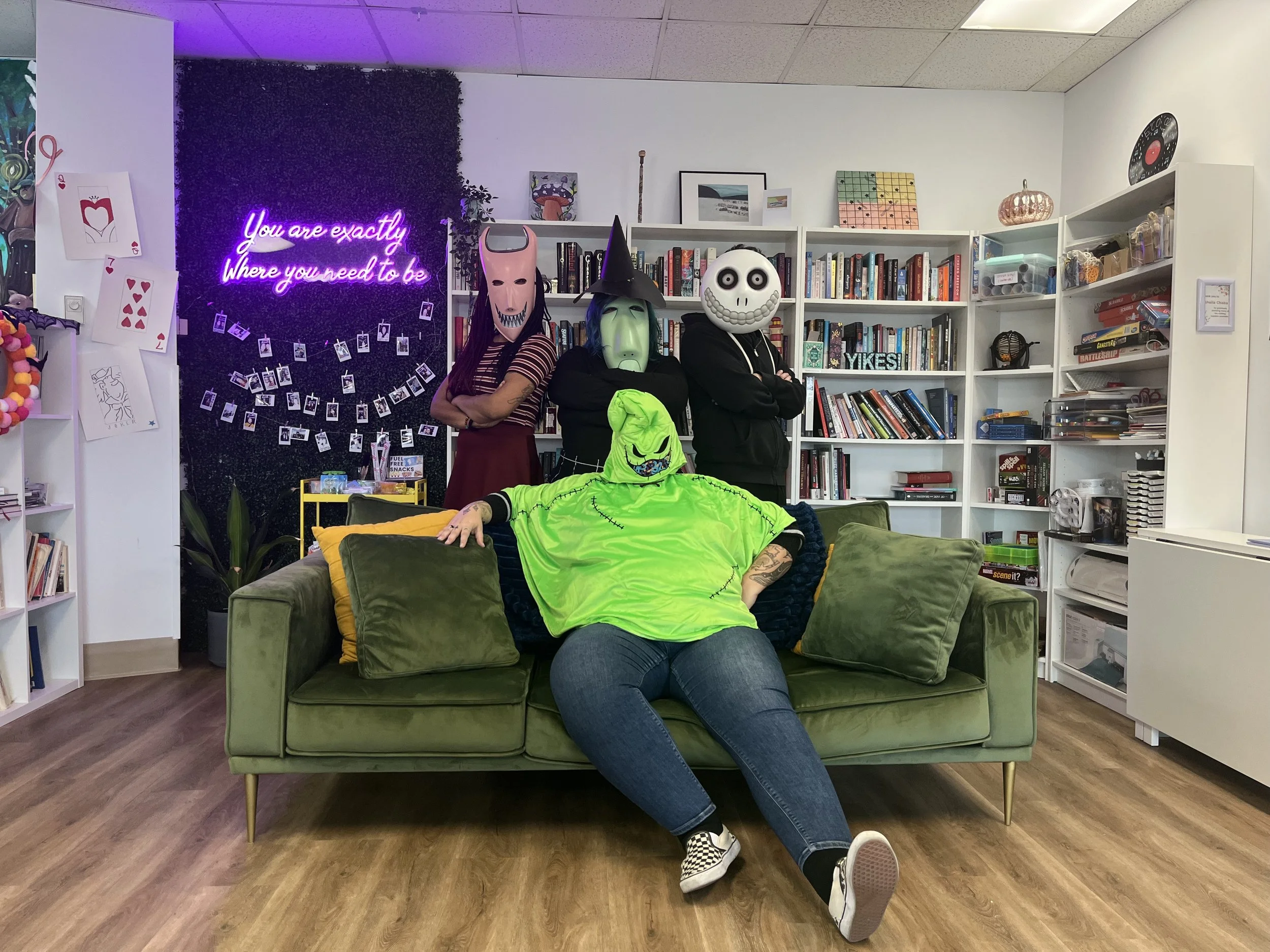 ECO-02 team in Halloween fancy dress as Oogie Boogie & Boogie’s Boys for The Nightmare Before Christmas.